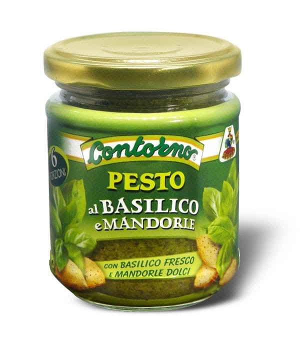 Összetevők: Bazsalikom, napraforgóolaj, mandula, só, fokhagyma, fekete bors. Savanyúságot szabályozó anyag: citromsav