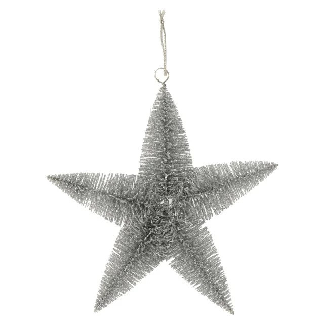 Csillag dekoráció glitteres ezüst 23cm