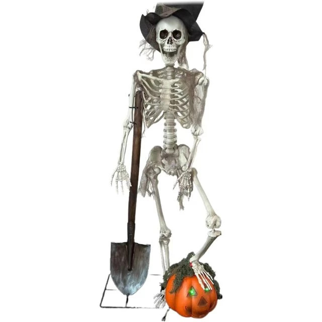 Csontváz ásóval, tökkel álló hangot ad és világít 32x19x92 cm