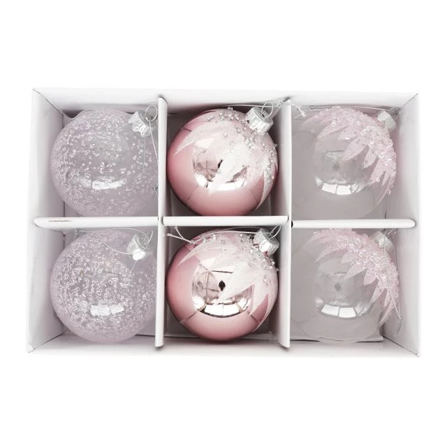 Gömb dombor mintával, glitter dekorral, akasztós 8 cm S/6