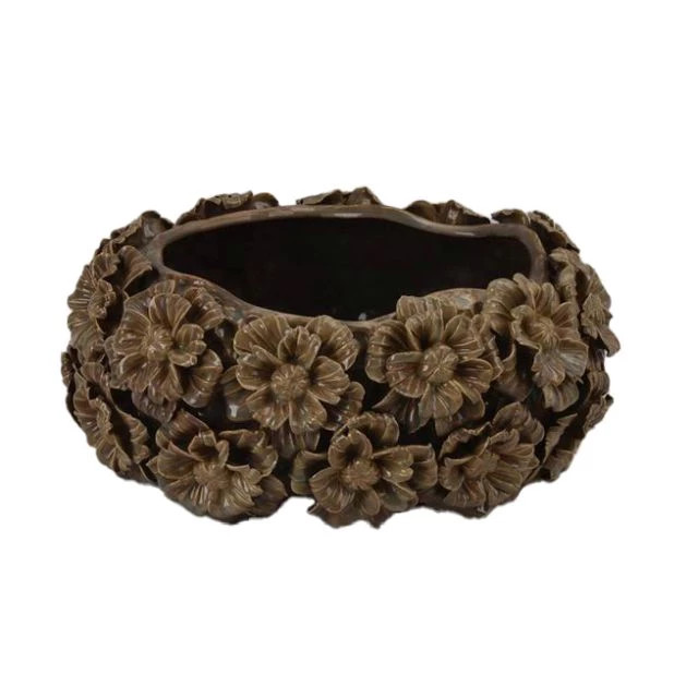 Kaspó kerek, 3D virág mintával 29x23,5x13 cm