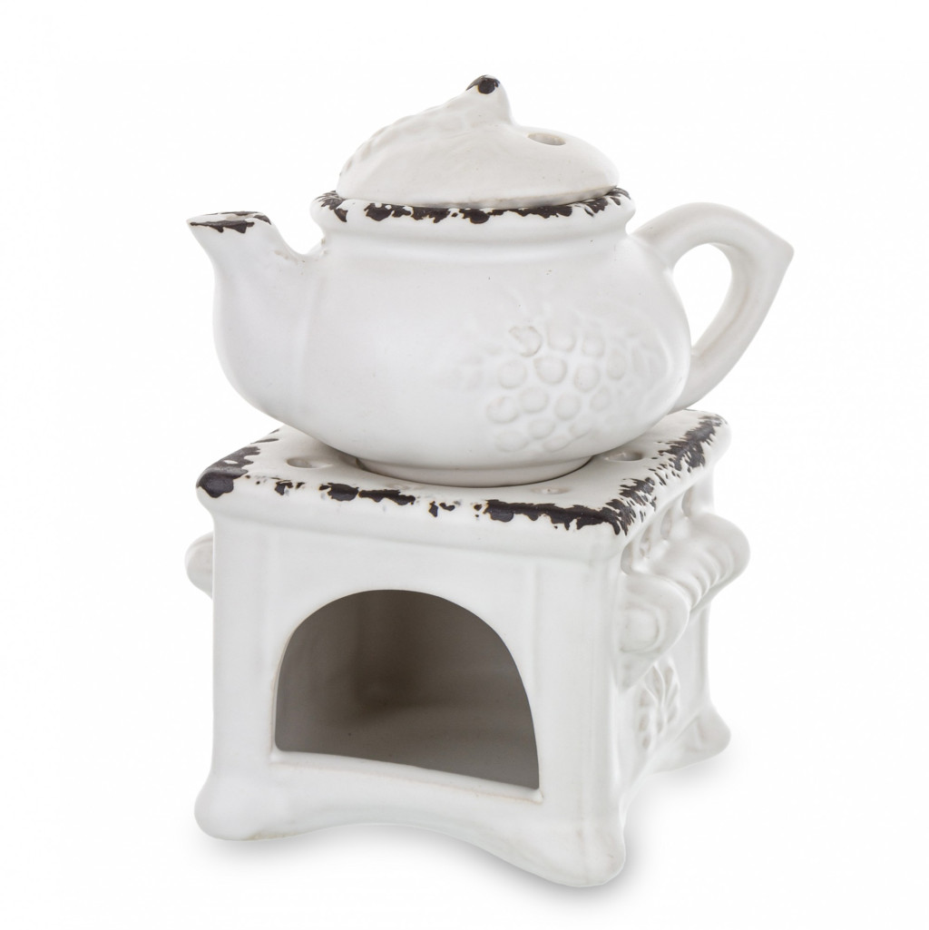 Mécsestartó teáskanna kerámia fehér 13x11x10cm