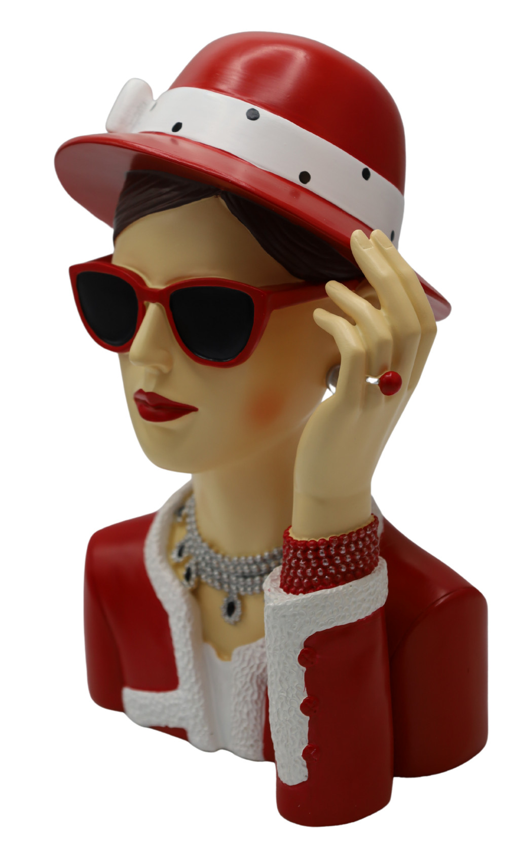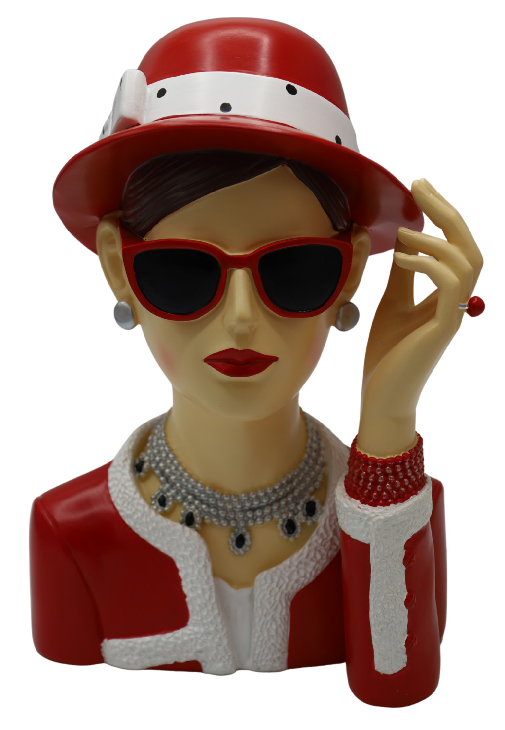 Női arc piros kalapos 17x26cm