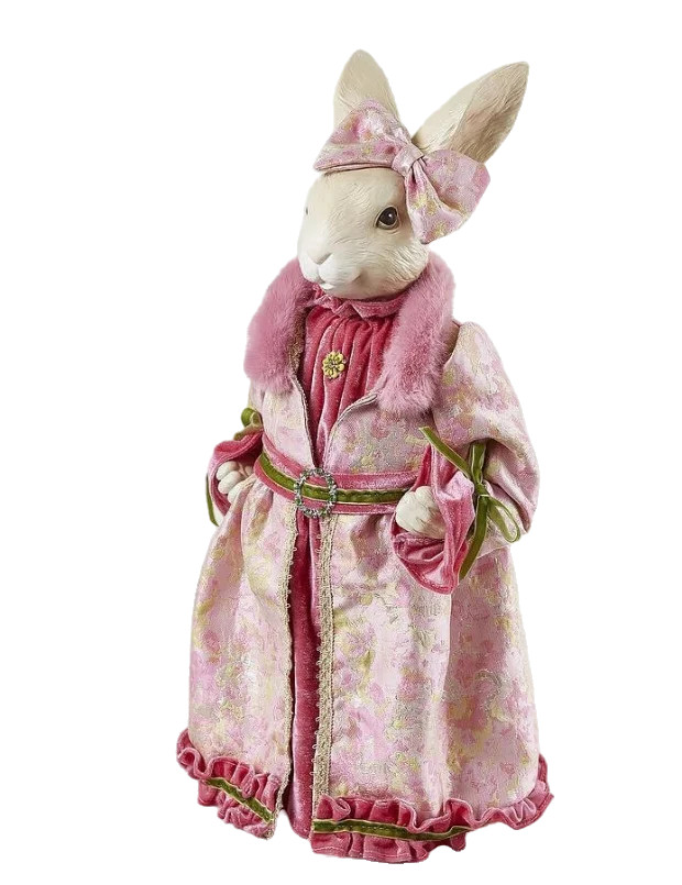Nyúl figura pink ruhában textil és poly 51cm