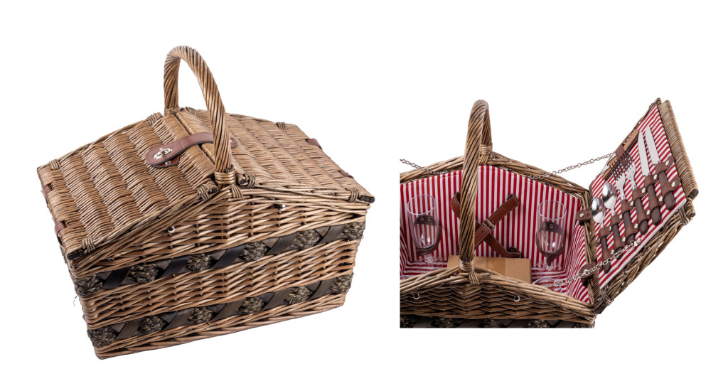 PIKNIK KOSÁR SZETT, 4 SZEMÉLYES, A FEDÉL KÉT OLDARA NYITHATÓ, BARNA