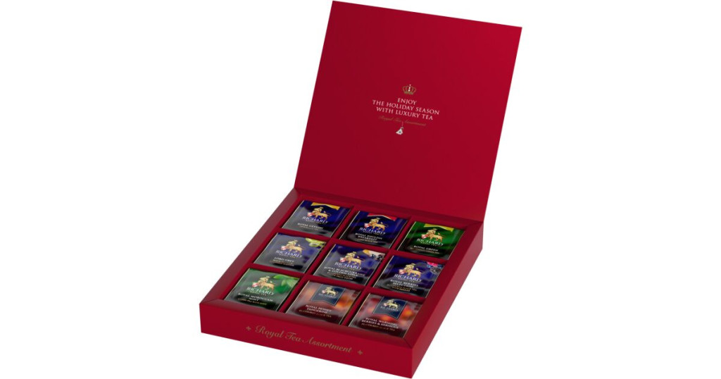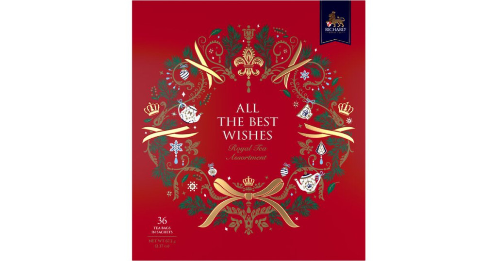 Páratlan RICHARD teák választéka, díszes karácsonyi koszorút formázó mintával. A koszorú a téli ünnepek elengedhetetlen dísze az Egyesült Királyságban. Ez az ajándék örömet szerez szeretteinek, és bármilyen teapartit feldíszít, ünnepi hangulatot kölcsönözve neki angol stílusban.