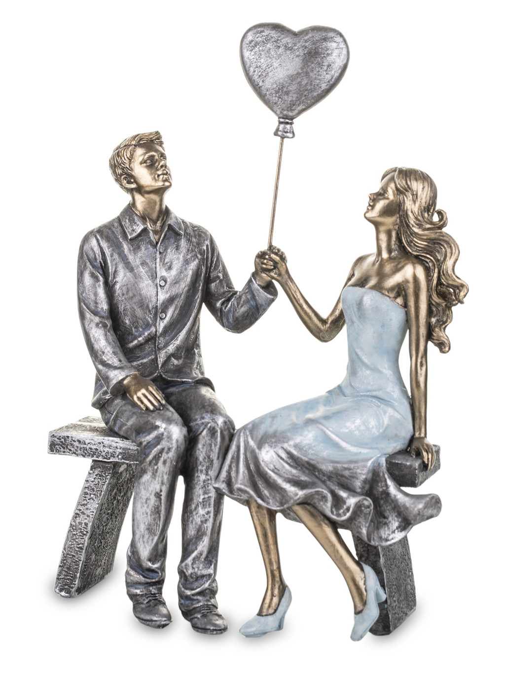 Szerelmespár padon lufival poly 23x16cm