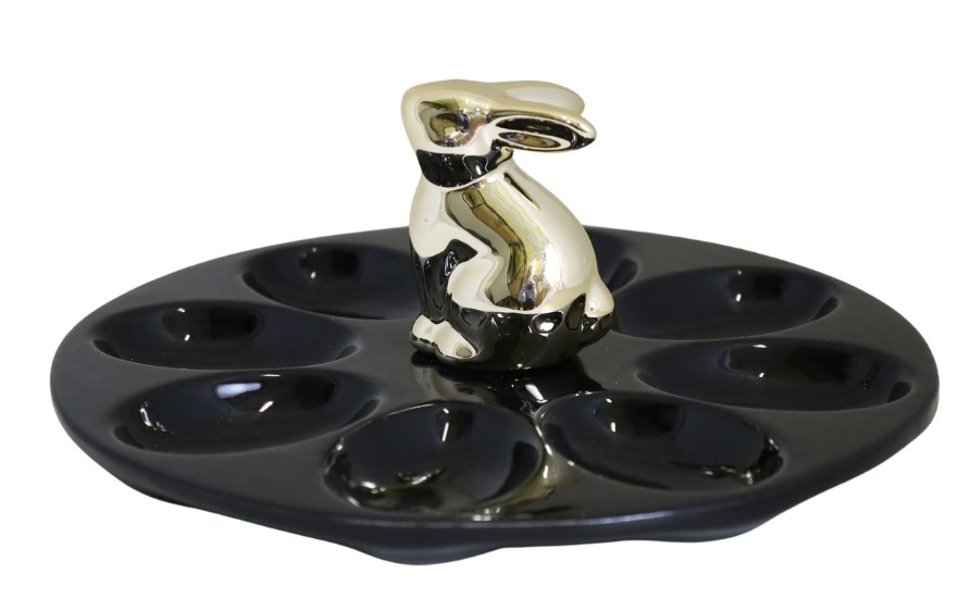 Tojástartó tál fekete, arany nyúllal kerámia 20x8cm