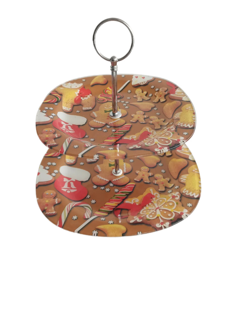 Ünnepi süteménykínáló üveg 2 emeletes 25x25cm